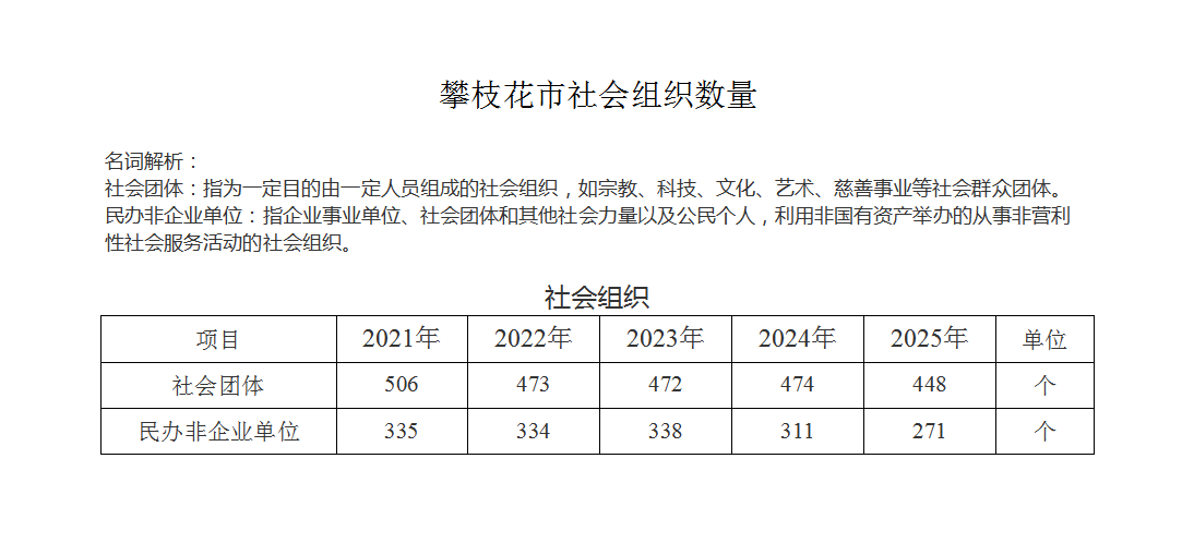 攀枝花市社会组织数量