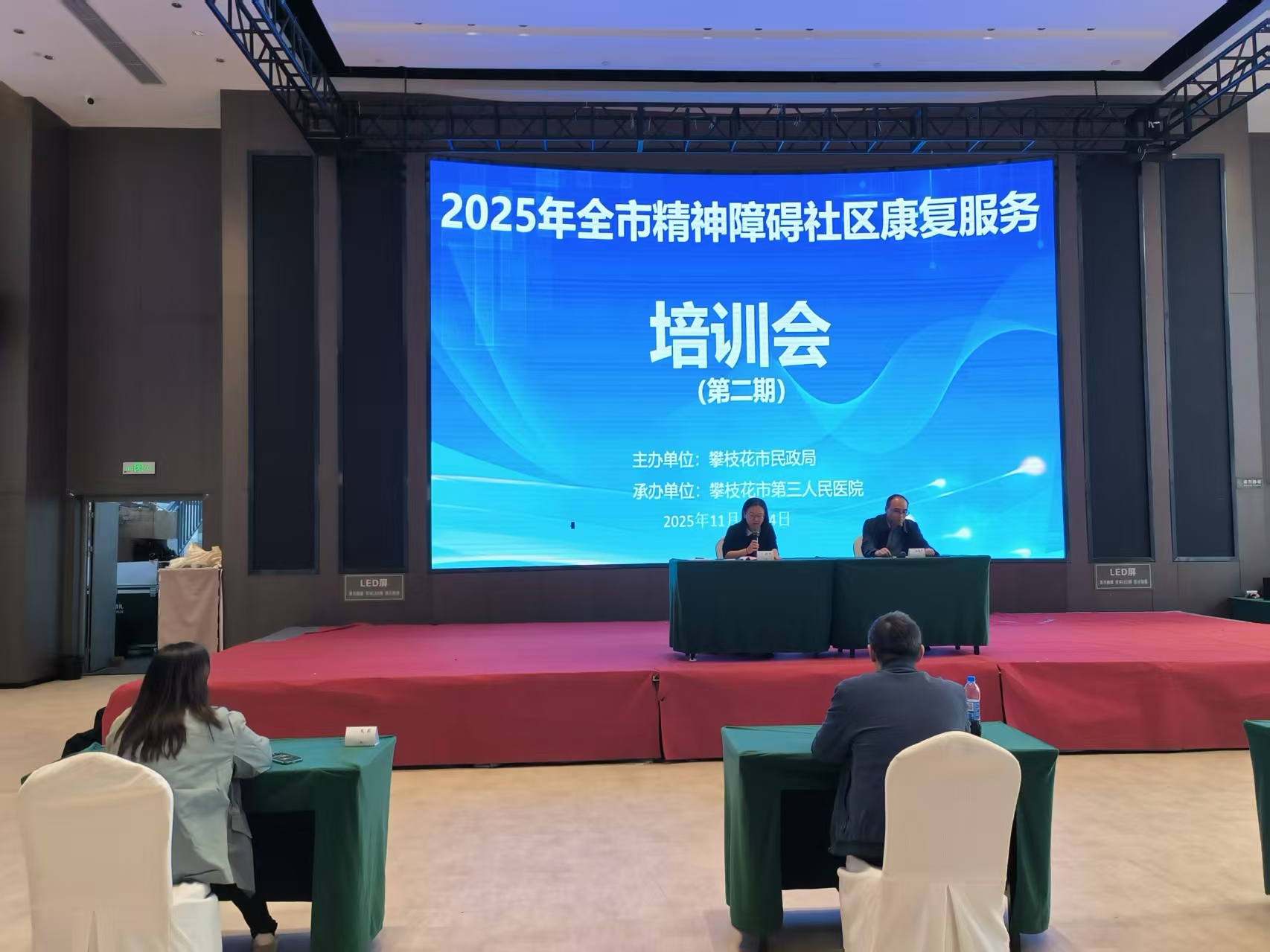 为深入贯彻落实国家及省市关于精神卫生工作的系列部署要求,切实筑牢精神障碍患者社区康复服务防线,全面提升基层精神障碍社区康复服务的专业化能力,11月13-14日,由市民政局主办、市第三人民医院承办的2025年全市精神障碍社区康复服务工作培训会(第二期)顺利结束。市民政局党组成员、副局长刘高华主持培训并讲话,全市县(区)民政系统相关负责人、社区康复站点工作人员及部分患者家属共计60余人参训。
