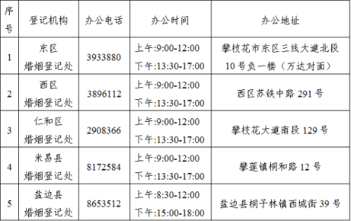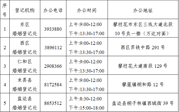 攀枝花市民政局关于结婚登记高峰期的温馨提示